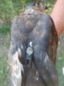 During the spring of 2025, we deployed another 23 Motus tags on Sharp-shinned Hawks, as part of our research effort to understand the impact of capillaria on these birds. As of December 2025, 19 of those birds have been detected coming south for the winter. One of them flew into a glass panel 5 days after it was banded – we were able to recover the tag from that bird and will re-deploy it next spring. That leaves only 3 birds that we have not heard from this past fall. That return rate, 19/23 = 83% is an incredible return rate, and those other three birds might still get detected at a future date. (They are sneaky birds.) The pictures and text below share the stories of two birds from last spring.